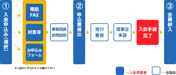入会手続きが完了しましたら、所定の期日に会費の納入をお願いします。